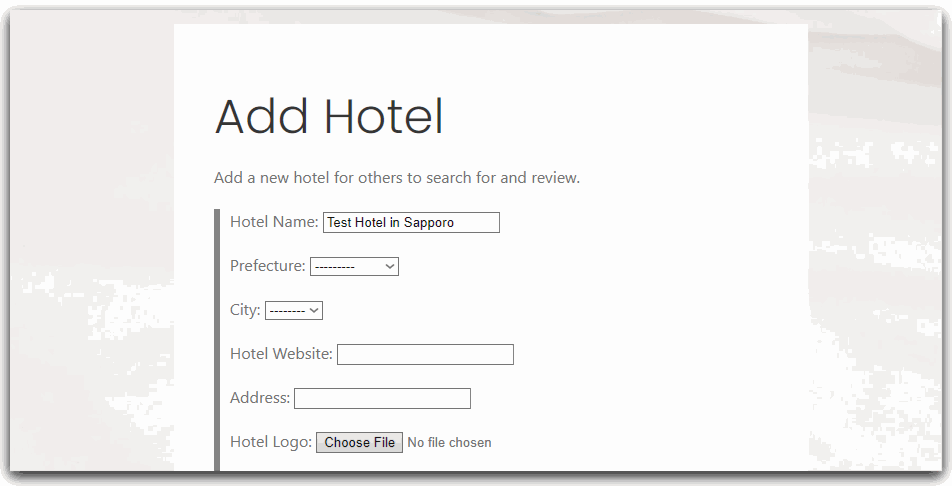 Adding a new hotel.Anyone can search for hotels. Registered users can add hotels to a favorites list.